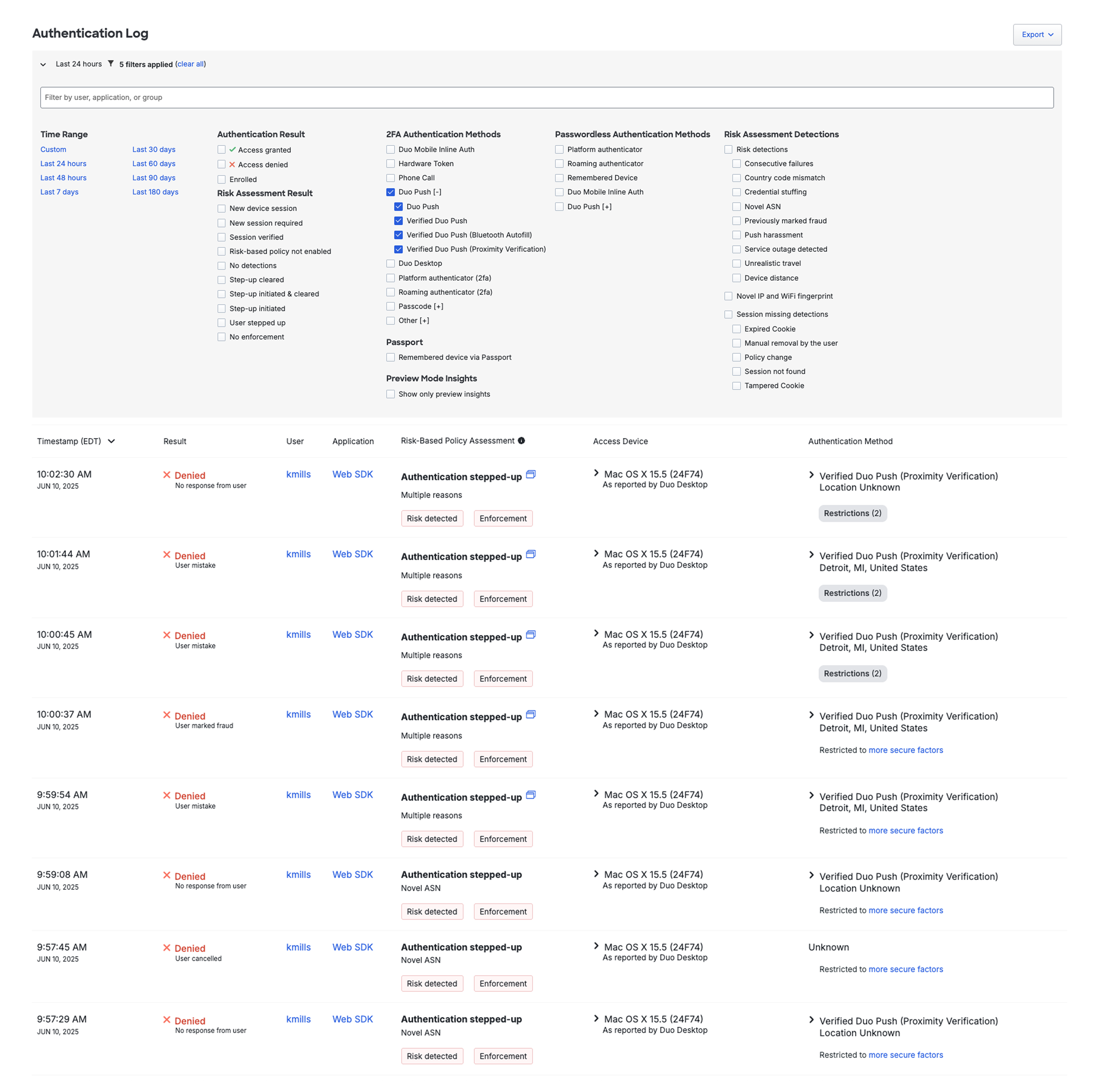 From earlier phases, it was clear that IT administrators need detailed authentication logs showing which push requests were approved via Bluetooth versus other methods. We enhanced filtering options to align with the settings configuration and added clear indicators in the logs to highlight Bluetooth usage.