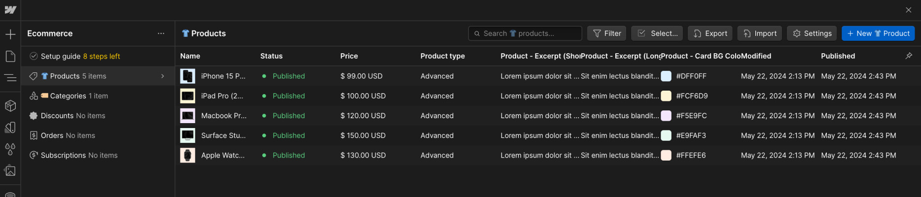 Products or eCommerce content function in a similar way to the CMS dynamic content, however, this is focused exclusively for eCommerce products.